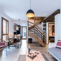 In the heart of Chamonix's charming Lyret district, this elegant 3-star duplex apartment offers a serene retreat with stunning mountain views. Perfectly situated in a quiet yet central location, the residence combines modern comfort with alpine charm, making it an ideal base for exploring the beauty of the Mont Blanc region. Whether you're here for thrilling outdoor adventures or a peaceful escape, this property promises an unforgettable stay. \n\nSpanning 74m², the apartment comfortably accommodates up to six guests across two levels. The lower level features a cozy TV lounge and dining area that opens onto a balcony with breathtaking views of the Brévent Mountains. The fully equipped kitchen is a haven for culinary enthusiasts, complete with an induction hob, oven, microwave, and specialty appliances for raclette, crepes, and fondue. An en-suite double bedroom with balcony access ensures privacy and relaxation, while the upper level offers a flexible sleeping arrangement with a twin bedroom and a bunk room, perfect for families or groups. Modern amenities like Wi-Fi, a washing machine, dryer, and private underground parking add to the convenience. \n\nJust steps from the apartment, you'll find Chamonix's vibrant center with its array of shops, restaurants, and cafes. The nearby Helbronner bus stop and train station provide easy access to the region's top attractions, including the Aiguille du Midi cable car and the Mer de Glace glacier. After a day of skiing, hiking, or sightseeing, return to the comfort of your alpine retreat and unwind on the balcony as the sun sets over the peaks. \n\nChoose this exceptional property for its unbeatable location, modern amenities, and the perfect blend of tranquility and adventure in the heart of the French Alps.