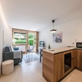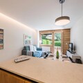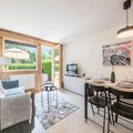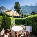 In the heart of the majestic Chamonix Valley, this charming ground-floor apartment in Les Praz offers a tranquil retreat for couples or small families. With its private garden and terrace, you’ll wake up to awe-inspiring views of Les Drus and the Aiguille Verte, a perfect backdrop for your alpine escape. Whether you’re sipping your morning coffee or enjoying an evening under the stars, the serene ambiance of this location will leave you enchanted. \n\nThe apartment spans 38 m² and is thoughtfully designed to provide both comfort and functionality. The cozy double bedroom ensures restful nights, while the bright living room, complete with a sofa bed and flat-screen TV, invites relaxation after a day of adventure. The fully equipped kitchen, featuring modern appliances like an induction hob, oven, and Nespresso machine, makes it easy to prepare meals to enjoy indoors or on the terrace. Additional conveniences such as a washing machine, heated towel rail, and Wi-Fi enhance your stay, ensuring a seamless experience.\n\nSituated just 170 meters from bus and train stops, the property offers excellent connectivity to Chamonix’s renowned attractions. Explore world-class ski slopes, hiking trails, and the vibrant town center, all within easy reach. After a day of exploring, store your gear in the private ski storage and unwind in the comfort of your alpine haven. \n\nWith its blend of modern amenities, breathtaking scenery, and prime location, this apartment is an ideal choice for those seeking a memorable getaway in the French Alps. Let the beauty of Chamonix inspire your next adventure.