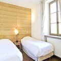 Inside, the apartment is thoughtfully designed to accommodate up to six guests. The spacious living and dining area is equipped with a TV, DVD player, satellite, and stereo system, creating a cozy space to unwind after a day of adventure. The open-plan kitchen is fully equipped with everything from a Nespresso machine to a raclette set, ensuring you can enjoy delicious meals with ease. Each of the three en-suite bedrooms offers comfort and privacy, with two featuring balcony access to soak in the alpine air. Additional amenities include a laundry room, ski storage, and complimentary Wi-Fi, ensuring a seamless stay.