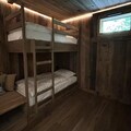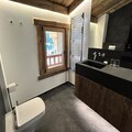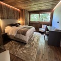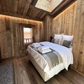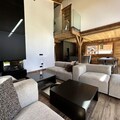 The chalet's thoughtful layout spans three levels, ensuring comfort and privacy for all. The ground floor boasts a spacious open-plan living area with a cozy fireplace, a fully equipped kitchen, and a dining space for 10, all opening onto a terrace with panoramic mountain views. The master suite on this level features a plush double bed, en-suite dressing room, and a luxurious bathroom. Upstairs, three elegantly appointed bedrooms, each with its own en-suite facilities, offer restful retreats, while the lower level includes a bunk room, a TV lounge, and ample storage for ski and cycling gear.
