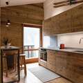 The apartment’s modern kitchen is fully equipped with high-end appliances, including a Nespresso coffee machine, dishwasher, and washer-dryer, making it ideal for longer stays. Guests can unwind in the spacious living area with its flat-screen TV, streaming services, and Bose Bluetooth speaker system, or enjoy a meal on the balcony overlooking the Mer de Glace and Le Brévent. Additional amenities such as ski storage, lift access, and private exterior parking ensure comfort and convenience throughout your stay.