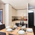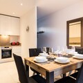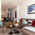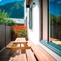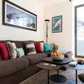 The apartment sleeps up to four people in two bright and airy bedrooms, each with flexible bed arrangements, sharing a stylish shower room and separate WC. The living area flows seamlessly onto a sunny south-facing terrace, where outdoor furniture invites you to sit back and soak in stunning views of Mont Blanc and the Aiguille du Midi. A fully equipped kitchen, washer-dryer, free WiFi, and secure ski storage add practical comforts, making longer stays effortless.