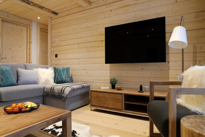 This stylish alpine apartment combines comfort and modern convenience in the heart of Chamonix. Perfectly positioned just a short stroll from the Planards nursery slopes and only five minutes from the town centre, it offers an ideal base for families and groups seeking both adventure and relaxation. The interior is bright and welcoming, with carefully chosen furnishings that create a cosy, contemporary alpine feel. Large windows and a covered balcony provide sweeping views of the Mont Blanc Massif and Aiguille du Midi, giving every guest a front-row seat to the iconic scenery.