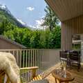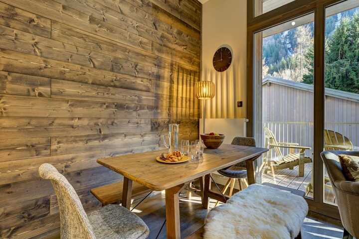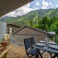 Step into this stylish and inviting 2-bedroom apartment, where every detail has been designed for comfort and alpine charm. The interiors are warm and contemporary, with compact yet cleverly planned rooms that provide everything you need for a relaxing stay in Chamonix. The real showstopper, however, is the double-height balcony, thoughtfully framed to feel like an extension of the living space. Outfitted with Adirondack chairs and outdoor dining furniture, it’s the perfect spot to enjoy meals, a morning coffee, or simply soak in the breathtaking mountain panorama, including the iconic Aiguille du Midi.