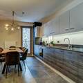 The apartment comfortably accommodates up to eight guests across four bedrooms and features a bright open-plan living area with a fireplace and access to a private terrace and balcony. The fully equipped induction kitchen includes a refrigerator, microwave, oven, freezer, dishwasher, coffee machine, toaster, kettle, and all essential cookware and utensils. Additional conveniences such as a washing machine, dryer, iron, hair dryers, and Wi-Fi ensure a relaxed and hassle-free stay. Two fans provide comfort in the warmer months, and covered parking within the same building adds further practicality.