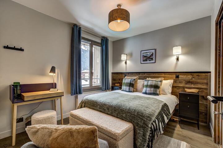 This modern 4-bedroom, 3-bathroom duplex apartment offers stylish alpine living in the heart of Chamonix. Spanning 88 m² over two floors, it comfortably accommodates up to eight guests and features a large double-height balcony with panoramic views of the mountains, including Le Brévent across the valley. Perfectly located just 200 metres from the main bus station and within walking distance of shops, restaurants, and bars.