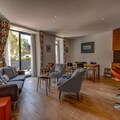 Inside, every detail has been designed for both comfort and convenience. The retro-inspired décor is paired with quality furnishings, and the additional TV room offers the perfect spot for movie nights or quiet reading. Free WiFi, a Smart TV with Netflix, French TV, and a DVD player keep everyone entertained. The fully equipped kitchen includes a full-size oven, microwave, dishwasher, washing machine, and Nespresso coffee machine — ideal for longer stays. The apartment also provides ski storage with boot heaters, outdoor furniture, and two private parking spaces. Please note, pets, including dogs, are not permitted.