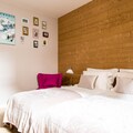 Fan, Fan, open kitchen(coffee machine(espresso), oven, microwave, dishwasher, fridge, freezer, dishes and cutlery), Living/diningroom(single sofa bed, TV, dining table, seating area), bedroom(single bed, single bed), bedroom(single bed, single bed), Bedroom with bathroom(double bed, shower, washbasin, toilet), bathroom(shower, washbasin, toilet), Internet access, Garden Furniture , DVD player, streamingservice, washing machine, terrace, garden, parking, ironing board, iron, hairdryer