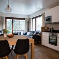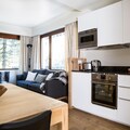 Inside, the apartment is thoughtfully equipped for a seamless stay. The contemporary kitchen includes a full-size oven, microwave, fridge, freezer, dishwasher, washing machine, and Nespresso coffee machine. Entertainment is taken care of with free WiFi, a flat-screen TV, Netflix, and a DVD player. The apartment also provides ski storage, an iron and board, hair dryers, and one private exterior parking space. Please note, pets, including dogs, are not permitted.