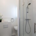 Fan, Fan, open kitchen(coffee machine(espresso), oven, microwave, dishwasher, fridge, dishes and cutlery), Living/diningroom(TV(flatscreen), dining table, fireplace, seating area), bedroom(single bed, single bed), Bedroom with bathroom(double bed or 2 single beds, shower, washbasin, toilet), bathroom(shower, washbasin, toilet), Internet access, Garden Furniture , DVD player, washing machine, balcony, terrace, garden, parking, ironing board, iron, hairdryer
