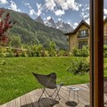Set in the picturesque village of Les Praz, this elegant 3-bedroom, 2-bathroom apartment offers space, light, and luxury just moments from the Flégère lift station. Designed with a contemporary alpine style, it features generous living areas, high-quality finishes, and a large private garden — a rare find in Chamonix. From the wooden terrace, you can dine al fresco, soak up views of Mont Blanc and the Aiguille du Midi, or simply unwind after a day on the slopes. Its location across from the lift and local bus stop means easy access to skiing, hiking, and the town centre, all within minutes.