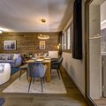Set in the heart of Chamonix, this elegant 2-bedroom, 2-bathroom apartment combines alpine charm with contemporary sophistication. White Pearl A04 offers a beautifully designed open-plan living area, complete with luxurious furnishings, ambient lighting, and a cinematic 165 cm Smart TV — perfect for relaxing evenings after a day in the mountains. Large glass doors open onto a covered terrace with lounge seating, creating a serene outdoor space where you can enjoy your morning coffee or an evening glass of wine while taking in the crisp mountain air.