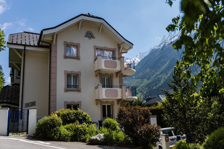 Perfectly positioned in the heart of Chamonix, this stylish 2-bedroom, 2-bathroom apartment offers the perfect blend of comfort, convenience, and mountain charm. Villa Floria sits just a two-minute walk from Chamonix’s main shopping street and only 250 metres from the nearest bus stop, giving effortless access to all major ski lifts and hiking routes. Decorated to a high standard with modern alpine touches, this ground-floor apartment opens onto a sunny terrace facing the majestic Mont Blanc Massif.