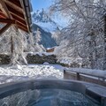 Tucked away in a tranquil residential area of Chamonix, this beautiful alpine chalet combines space, comfort, and modern style. With 5–6 bedrooms and 3–4 bathrooms, it sleeps up to 12 guests, making it ideal for families or groups seeking a peaceful yet central base. The bright open-plan living area, framed by large windows, offers stunning views of Mont Blanc and opens onto a sunny terrace with an inviting outdoor hot tub — the perfect spot to relax after a day on the slopes.