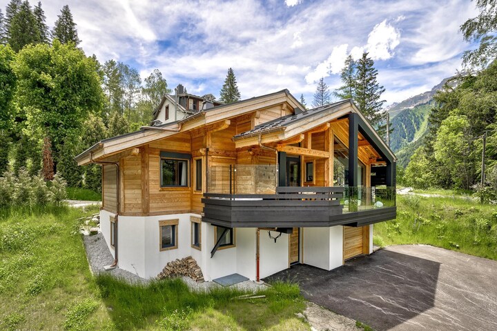 This stunning five-bedroom chalet in Chamonix-Mont-Blanc offers 195 m² of beautifully designed living space, accommodating up to ten guests in comfort and style. Newly built and tastefully furnished, it combines modern luxury with breathtaking mountain views. Located in a peaceful setting near Le Lavancher, the chalet provides quick access to several world-class ski areas including Grands Montets and La Flégère, both around 4 km away. Chamonix town centre, with its shops, restaurants, and vibrant alpine atmosphere, is just a short 6 km drive.