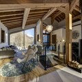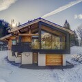 The chalet’s open-plan layout features a spacious living area with a fireplace and direct access to a private terrace and garden. The fully equipped induction kitchen includes a refrigerator, oven, microwave, freezer, dishwasher, coffee machine, toaster, kettle, and all essential cookware, making it ideal for families or groups. Guests can relax in style with six televisions, Wi-Fi, and a mix of indoor and outdoor entertainment spaces. The chalet also features luxurious wellness facilities including a sauna, hot tub, and a private heated swimming pool — perfect for unwinding after a day in the mountains.