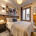 The apartment comfortably sleeps up to six guests across three versatile bedrooms. Two rooms can be arranged as twins or doubles, while the third offers a cosy small double bed, perfect for couples or families. The building’s central location — just 200 metres from Chamonix’s main bus station, with direct access to Geneva airport buses and local ski shuttles — means that everything from ski lifts to restaurants and boutique shops is within walking distance.