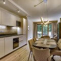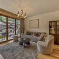 The open-plan living area is bright and spacious, with large windows leading onto a private balcony where you can dine alfresco or simply relax while admiring the mountains. The stylish furnishings and fully equipped kitchen create a wonderful home-from-home environment, whether you are preparing breakfast before a day on the slopes or enjoying a cosy evening indoors.