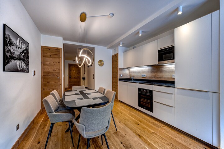 This beautifully designed apartment offers modern comfort and timeless Alpine elegance. Perfectly located in the heart of Chamonix, this newly built residence (completed August 2025) combines contemporary style with breathtaking views of the Mont Blanc range. The apartment provides a warm and welcoming atmosphere, ideal for couples or families wanting to enjoy everything the valley has to offer.