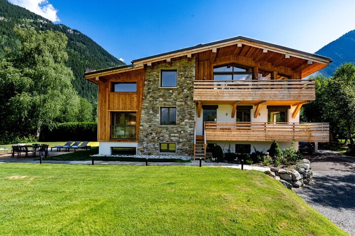 This beautifully furnished 6-bedroom chalet in Chamonix-Mont-Blanc offers an exceptional blend of alpine charm and modern comfort. Spanning 284 m², the property provides spacious accommodation for up to 14 guests, making it perfect for families or groups seeking a stylish mountain retreat. Nestled in a peaceful area surrounded by nature, it enjoys stunning views of Mont Blanc and the surrounding peaks, while being close to the river Arve, Les Bois bus stop, and popular restaurants such as Le Caphorn and Rose du Pont. The ski lifts of La Flégère are just 1 km away, and the heart of Chamonix is within easy reach.