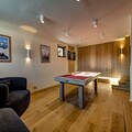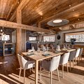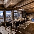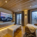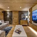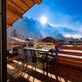Inside, the chalet combines traditional alpine warmth with elegant contemporary finishes. The large open-plan living area features a cosy fireplace and leads onto a sunlit terrace and balcony overlooking the mountains. A fully equipped kitchen with modern appliances and generous dining space makes it ideal for entertaining. After a day on the slopes, unwind in the sauna or hot tub, or relax in the spacious lounge with satellite TV and Wi-Fi. Thoughtful amenities such as a washing machine, dryer, and heated boot storage ensure maximum comfort throughout your stay.