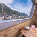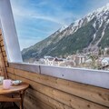 And the most important feature of this apartment is the balcony with stunning views of snow-capped mountains, the chalet catching the alpine light at sunrise and evening hues at dusk.