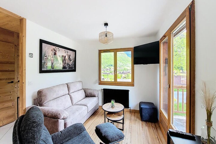 Surrounded by the breathtaking peaks of the French Alps, this charming detached chalet in Morzine offers a serene mountain retreat with modern comforts. Perfectly positioned just 200 meters from the Avoriaz shuttle and a short 3-minute drive from the lively town center, it combines convenience with tranquility. Whether you're planning a winter ski adventure or a summer escape, this chalet promises unforgettable moments amidst stunning alpine scenery. \n\nInside, the chalet spans 67m² and comfortably accommodates up to six guests across three thoughtfully designed bedrooms. The main floor features a fully equipped kitchen with modern appliances, a cozy dining area, and a laundry space with a washing machine and shower. Upstairs, two double bedrooms with balcony access provide sweeping mountain views, while a third bedroom with bunk beds is perfect for children or friends. The bathroom includes a bathtub, heated towel rail, and additional toilet, ensuring a comfortable stay for all. \n\nOutdoor amenities include two private parking spaces and a small garden where you can soak in the fresh mountain air. The ground floor garage doubles as a ski and bike storage area, complete with a water point for cleaning your equipment after a day of adventure. Additional touches like Wi-Fi, electric shutters, and raclette and fondue sets add to the chalet's charm. \n\nWith its proximity to the Avoriaz ski area, Morzine's vibrant town center, and endless hiking and biking trails, this chalet is an ideal base for exploring the Haute-Savoie region. Whether you're here to carve through powdery slopes, wander through alpine meadows, or simply relax in the heart of nature, this mountain haven offers the perfect setting for your next getaway.