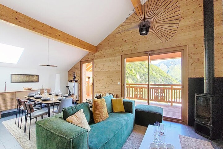 At the edge of the picturesque Saint-Jean-d'Aulps resort, this brand-new apartment offers a seamless blend of modern comfort and alpine charm. With ski-in/ski-out access directly to the slopes, it’s a haven for winter sports enthusiasts and a tranquil retreat for summer adventurers. Imagine waking up to breathtaking mountain views from your private terrace, sipping coffee as the fresh alpine air invigorates your senses. Whether you’re here for skiing, hiking, or simply relaxing, this property invites you to experience the beauty of the French Alps in style. \n\nStep inside and discover a thoughtfully designed space furnished with high-quality materials. The main room features a fully equipped kitchen with everything from an induction hob to a coffee maker, perfect for preparing hearty meals after a day on the slopes. The dining area comfortably seats eight, while the living room boasts a velvet sofa, armchairs, a wood-burning stove, and board games for cozy evenings. Four bedrooms, including two en suite, provide flexible sleeping arrangements for families or groups. Modern amenities like Wi-Fi, a washing machine, dryer, and an elliptical trainer ensure your stay is as convenient as it is comfortable. \n\nLocated in the heart of the resort, you’ll find easy access to local shops, restaurants, and ski facilities. In summer, the area transforms into a paradise for hikers and cyclists, with trails leading to stunning vistas and peaceful alpine meadows. For added convenience, the property includes a private ski locker with a boot dryer, a garage with an electric car charging point, and optional breakfast and airport transfer services. \n\nWhether you’re seeking thrilling outdoor adventures or serene mountain escapes, this apartment is the perfect base for creating unforgettable memories in Saint-Jean-d'Aulps.