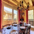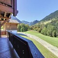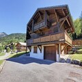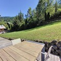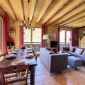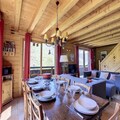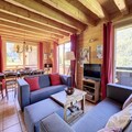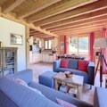 The chalet boasts a fully equipped kitchen with modern appliances, including a raclette machine and a fondue machine for cozy meals. The spacious living area is perfect for relaxing, with a comfortable seating area, a dining table, and a large bay window that opens to a south/west-facing terrace. Additional amenities include three bathrooms, one with a walk-in shower, and a separate toilet. The property also features a double garage with ski storage, ensuring convenience for winter sports enthusiasts.