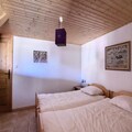 This charming 4-bedroom chalet, located in the peaceful village of Biot, can accommodate up to 10 people. The property features a variety of sleeping arrangements, including two bedrooms with single beds, a trundle bed, and ample storage space. It is pet-friendly, allowing guests to bring their pets, and offers a comfortable, cozy atmosphere. The chalet is well-equipped with essential amenities, including Wi-Fi, and a private parking space with a carport. Bed linen and towels are not provided, but duvets and pillows are available for all beds.