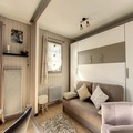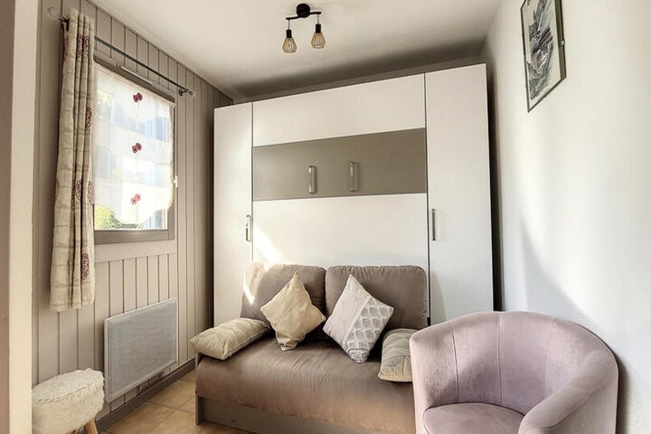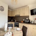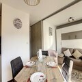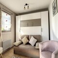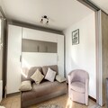 This cozy apartment comfortably accommodates 4 people, with a bedroom featuring a bunk bed and a foldaway bed in the living area. It also includes a storage cupboard and wardrobe for convenience. Pets are allowed, making it a perfect option for travelers with animals. Duvets and pillows are provided for all beds, but bed linens and towels are not included.