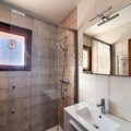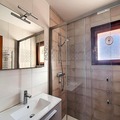 The apartment is equipped with a fully functional kitchen, including a gas stove, microwave, toaster, coffee maker, fridge, and dishwasher. The bathroom is newly renovated with a walk-in shower and a sink, and there is a separate WC for added privacy. Guests can also take advantage of the ski and mountain bike room, which includes a water jet for cleaning gear.