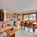 This spacious apartment accommodates up to 8 guests, offering 78m² of comfort across one level. It includes three separate bedrooms, one with a double bed, one with two single beds, and one with bunk beds. Pets are not allowed, and duvets and pillows are provided for all beds. Guests can enjoy convenient amenities such as Wi-Fi, a raclette machine, and ski and bike storage for up to 4 items. A private uncovered parking space is available, ensuring easy access to the apartment.