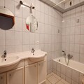 The well-equipped kitchen features an oven, microwave, dishwasher, and Dolce Gusto coffee maker, perfect for preparing meals during your stay. The large living room offers a sofa, armchair, TV, and DVD player for entertainment. The apartment includes two bathrooms, one with a bathtub, shower screen, double sinks, and one with a shower, WC, and sink. The heating system is an oil boiler, and guests have access to the courtyard.