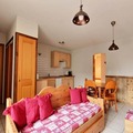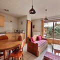 This cozy studio apartment accommodates 2 to 4 people in a 43m² space, featuring a double bed in the bedroom and a pull-out convertible sofa bed in the living room. The property is pet-free, making it ideal for guests with allergies. It offers duvets and pillows for all beds, and includes convenient amenities such as Wi-Fi, a raclette machine, and ski and bike storage for up to 4 items. A private uncovered parking spot is available for guests, ensuring easy access to the apartment.