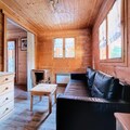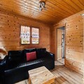 This spacious chalet, ideal for 16 to 18 guests, offers a comfortable stay with 2 combined chalets. The Manupa Clévie chalet features various bedrooms, including double and single beds, along with a convertible sofa bed. The chalet is pet-friendly and provides amenities like Wi-Fi, private parking, and ski/bike storage. Guests will also enjoy a relaxation area with a sauna and shower.