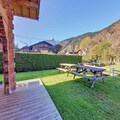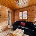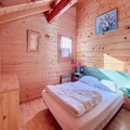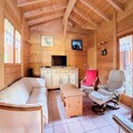 This charming chalet offers spacious accommodation for 8 to 10 guests with four bedrooms, including double and single beds. The property features a comfortable living room with a TV, an office with a convertible sofa bed, and a relaxing area with a sauna and shower shared with another chalet. The property is pet-friendly and includes Wi-Fi, private uncovered parking, and ski/bike storage.