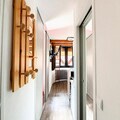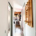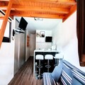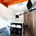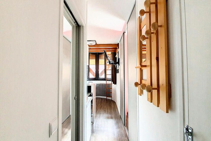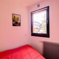 This cozy studio apartment accommodates up to 3 guests, featuring a foldaway double bed and a convertible sofa bed. It is not pet-friendly and does not provide Wi-Fi. Duvets and pillows are available for all beds, but guests must bring their own bed linens and towels. The apartment offers private parking at the residence, with no designated parking spaces, as well as a bicycle room for summer storage and a ski room for winter use.