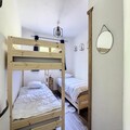 This 72m² apartment is perfect for up to 5 guests, offering two bedrooms with a bunk bed, a single bed, and a double bed. It is not pet-friendly, and Wi-Fi is not available. The apartment provides duvets and pillows for all beds, but guests need to bring their own bed linen and towels. Two parking spaces are available in front of the building, and there is a ski/bike room and laundry area in the cellar.