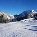 The apartment is equipped with a kitchenette, including an oven, microwave, kettle, toaster, washing machine, and electric hob. The bathroom features a bathtub with a sink, and there is a separate toilet. The west-facing balcony, complete with garden furniture, offers a perfect spot to unwind and enjoy the mountain views. Guests also have access to a ski box and a numbered parking space for added convenience.