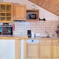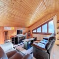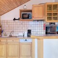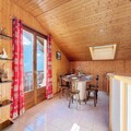 The apartment is well-equipped with a fully functional kitchen, including a refrigerator, butane gas stove, oven, microwave, and dishwasher, making it ideal for preparing meals. The large, open-plan living area features a leather sofa, armchair, and TV for relaxation. A bathroom with a bathtub and a separate toilet provide convenience, while a ski room is available for storing winter gear. Additional comforts include a fondue and raclette machine for cozy meals and WIFI to stay connected during your stay.