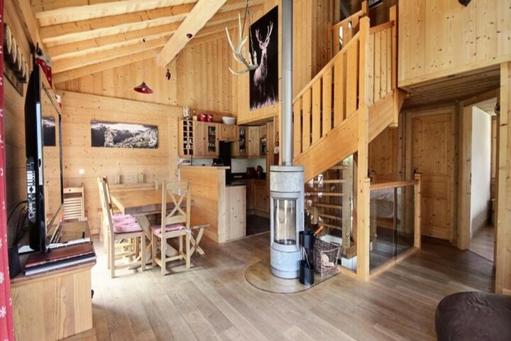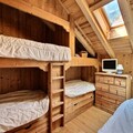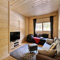 This spacious 200m² chalet accommodates 12 to 14 people, offering comfort and modern amenities for a family or group getaway. The chalet features multiple bedrooms, including a mix of double beds and single beds, ideal for a variety of sleeping arrangements. The cozy living areas include a leather sofa, flat-screen TV, and a dedicated space for video games. The property is pet-free and offers free Wi-Fi, making it perfect for a peaceful retreat without distractions. A private garden allows children to play safely, while a large outdoor terrace provides the perfect spot for relaxation.