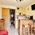 The well-equipped kitchenette offers 2 electric burners, a mini oven, microwave, and essential appliances like a kettle, toaster, and filter coffee maker, perfect for preparing simple meals. A folding dining table with stools provides ample space for meals. Additional amenities include a raclette machine, fondue maker, and a cellar for extra storage. Heating is provided through electricity, ensuring a warm and comfortable environment. The property also offers collective parking for your convenience.