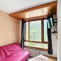 The studio is well-equipped with a kitchen area featuring a filter coffee maker, as well as a dining space for four. The bathroom includes a shower, sink, and toilet. Guests can enjoy access to a heated indoor swimming pool, perfect for relaxing after a day of adventure. A balcony with a north-facing view of the Aulps valley offers a scenic spot to unwind, while additional amenities like a raclette machine, fondue set, and an electric barbecue make for a comfortable, enjoyable stay.