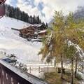 Inside, the apartment is fully equipped for a comfortable stay with a kitchen featuring 2 electric hotplates, a refrigerator, mini-oven, dishwasher, microwave, kettle, and coffee maker. The living area includes a TV and dining space, with a French window leading to the west-facing balcony with views of the chalet. The bathroom offers a bathtub with a towel dryer, and there is a separate toilet for added convenience.