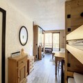 This spacious studio apartment can accommodate 4 to 6 people and offers a comfortable stay in the heart of the St Jean d’Aulps ski resort. It includes a mountain corner with two bunk beds, a double bedroom, and a convertible sofa in the living area. Pets are not allowed, ensuring a peaceful environment, and guests are provided with duvets and pillows for all beds. Sheets and towels are not included, so guests should bring their own. The apartment also offers a valley-view terrace with seating and deckchairs for relaxing after a day on the slopes.