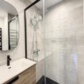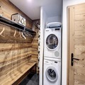 The apartment is well-equipped with a fully functional kitchen, including a ceramic hob, dishwasher, oven, and microwave, perfect for preparing meals. A shared ski room with a laundry area, ski room, and shoe dryer adds extra convenience. The spacious shower room includes a towel dryer, and a separate toilet is also available. Guests can also enjoy the shared bike storage room and free Wi-Fi during their stay.
