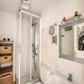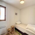 This cozy apartment is designed for 4 to 5 people, making it ideal for small families or groups. It features two bedrooms, including one with a double bed and the other with two single beds, both offering ample storage space. Additionally, there is a mountain corner with a bunk bed, perfect for children or extra guests. The apartment is pet-free, ensuring a peaceful stay. Sheets and towels are not provided, but duvets and pillows are available for all beds.