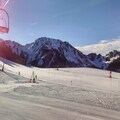 The apartment is equipped with a well-designed kitchen featuring modern appliances such as an oven/microwave, refrigerator, freezer, and a Dolce Gusto coffee machine. The open living area has a comfortable sofa and leads to a balcony with stunning mountain views, perfect for enjoying a meal cooked on the electric barbecue. The bathroom includes a shower, toilet, and ample storage space. Additional amenities include a raclette machine, fondue machine, electric heating, parking space, and a cellar for extra storage.