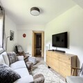 The apartment’s kitchen is fully equipped with modern appliances, including a dishwasher, oven, electric hob, microwave, toaster, kettle, and coffee maker. The spacious living and dining areas offer a comfortable place to relax, with a sofa, TV, stereo, and DVD player. The apartment also features a bathroom with a bathtub and a separate toilet, making it convenient for all guests. A west-facing balcony provides the perfect spot to enjoy afternoon sun and beautiful views of the resort and slopes.